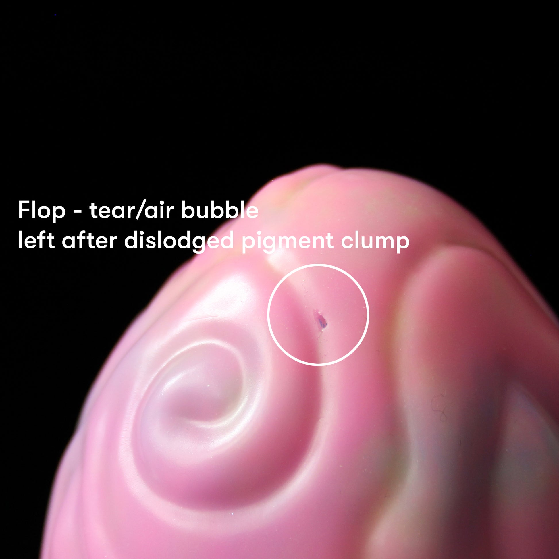 FLOP! - tear/air bubble left after dislodged pigment clump (check product photos)